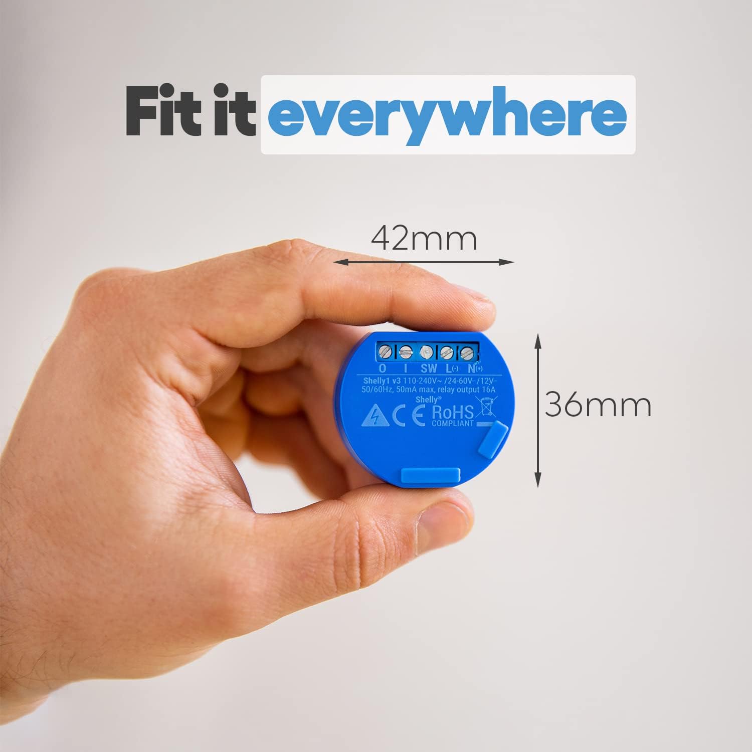 - Caractéristiques : Allumez et éteignez l’appareil directement depuis votre smartphone ou votre tablette. Connectez simplement Shelly à votre réseau Wi-Fi et vous pouvez contrôler votre maison avec votre smartphone. Créez des plans quotidiens individuels pour vos appareils. Shelly 1 peut s’allumer et s’éteindre automatiquement en fonction du lever du soleil et du plateau. Avec Shelly 1, vous pouvez contrôler un large éventail d’appareils et d’applications. Le compte à rebours intégré éteint automatiquement les appareils.